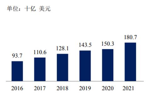 图表:2016-2021年全球抗肿瘤药行业市场规模