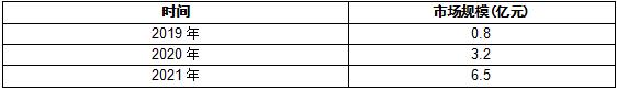 图表:2019-2021年中国水系钠离子电池行业市场规模(单位:亿元)