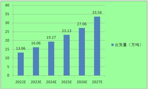 图表:2022-2027年我国碳纳米管出货量预测(单位:万吨)
