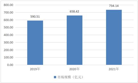 2019年中国白酒包装行业市场规模为590.51亿元,2020年市场规模为658.42亿元,2021年市场规模为734.14亿元。