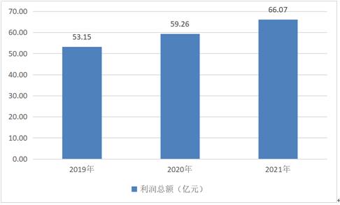 2019年中国白酒包装行业利润总额为53.15亿元,2020年利润总额为59.26亿元,2021年利润总额为66.07亿元。