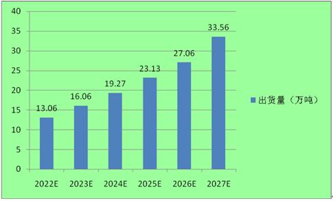 图表:2022-2027年我国碳纳米管出货量预测(单位:万吨)