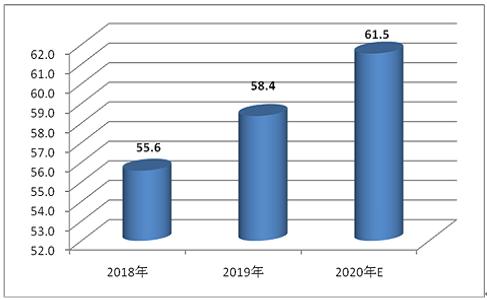 在多模光纤的应用和大数据行业发展的推动下,我国综合布线行业生产规模近年来以5%左右的同比增长速度增加,2019年综合布线行业产能为58.4亿元。