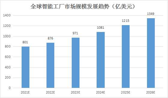 图表:全球智能工厂市场规模发展趋势(亿美元)