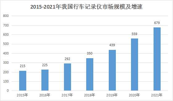 图表:2015-2021年我国行车记录仪市场规模及增速
