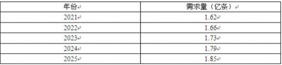 图表:2022-2025年我国毛毯类产品需求预测