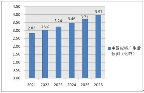 图表:2022-2026年我国废钢产生量预测(单位:亿吨)