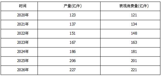 图表:2020-2026年全球针灸针产量、表观消费量