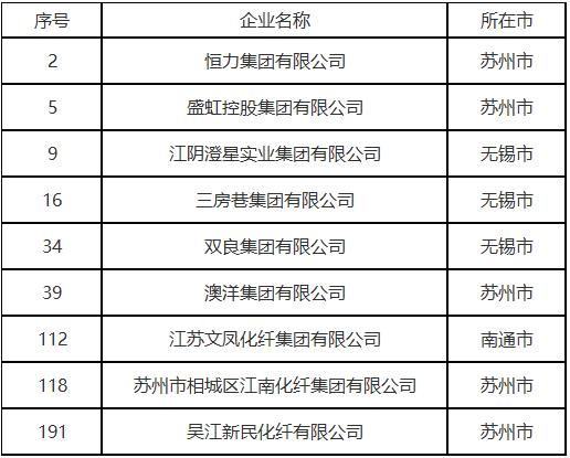 图表:江苏省化纤行业200强名单(化纤企业部分)