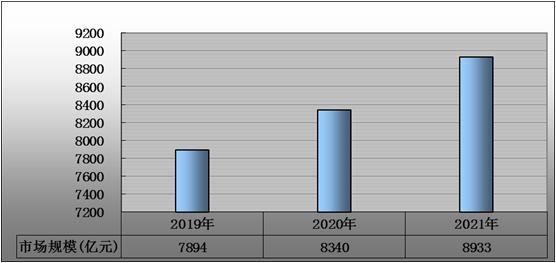 图表:2019-2021年中国航空航天行业市场规模