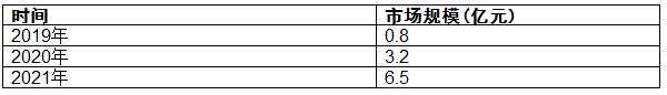图表:2019-2021年中国水系钠离子电池行业市场规模(单位:亿元)