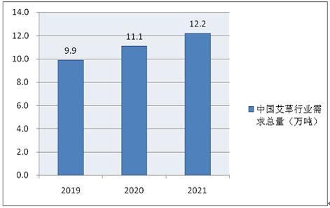图表:2019-2021年中国艾草行业需求规模(单位:万吨)