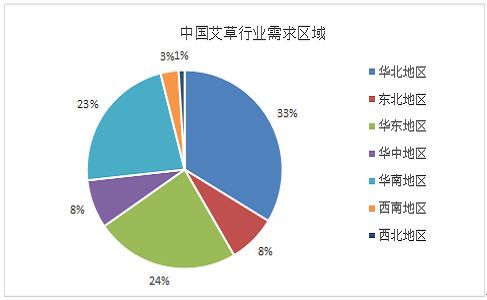 据数据显示,中国艾草行业需求区域华北地区占比为33%,华东地区占比为24%,华南地区占比为23%。