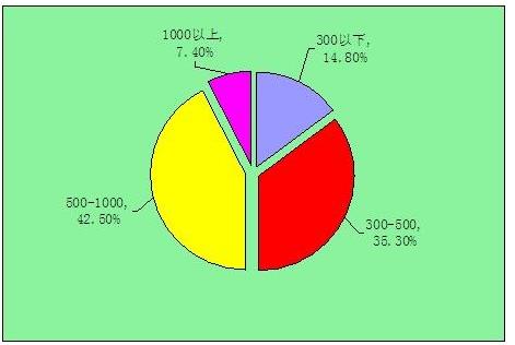 图表:消费者每月用于美业方面的花费情况(单位:元)