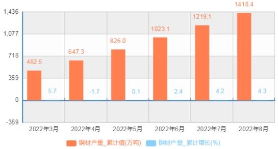 我国是世界上第二大产铜国和第一大原铝生产国,市场供应充足。2022年8月铜材累计产量为1418.4万吨,铝材产量为4030.8万吨。