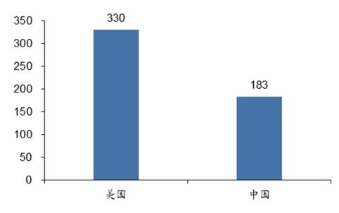 图表:2011-2020 年期间中美遥感卫星发射数量对比