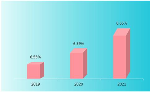2019-2021年中国智能制造行业利润率由6.55%上升到6.65%。