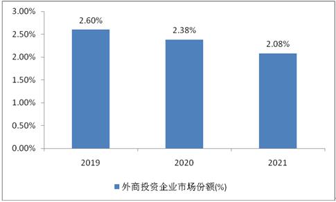 图表:2019-2021年我国外商投资企业市场份额
