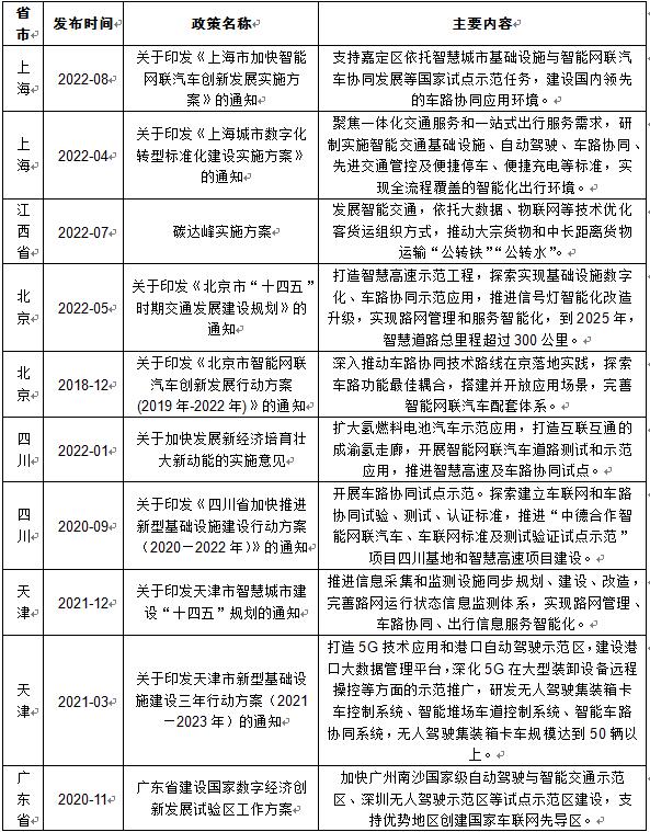 图表:部分省市车路协同行业相关政策
