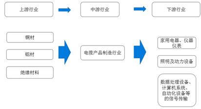 在上游领域,铜材供应代表企业有世茂铜业、江润铜业、华新有色、金田电材等;铝材供应代表企业有中国铝业、坚美铝材、南山铝业、闽发铝业、兴发铝业等;绝缘材料供应代表企业有德威新材、中如化工、中轩塑业、中亿缆材、志宏缆材等。