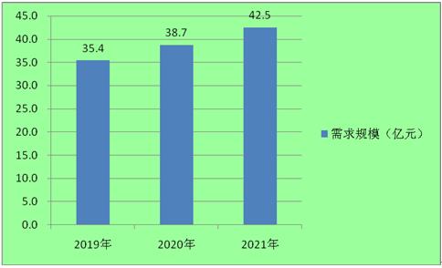 图表:2019-2021年军工线缆市场需求规模(亿元)