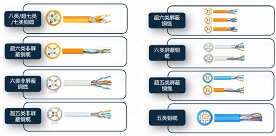 六类及以下:目前应用最广泛的数据电缆,包括屏蔽结构与非屏蔽结构,常用于企业网、数据中心、工业、家庭等场景的布线系统及安防接入网系统中。