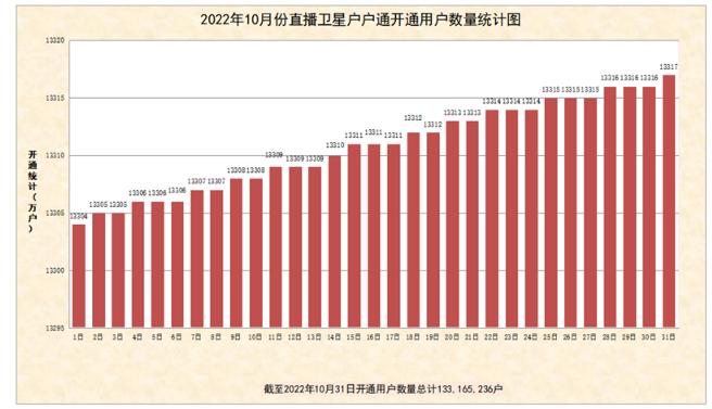 数据显示,至10月31日为止,全国直播卫星户户通开通用户已达13167万户,与9月底的13155万户比较继续呈增长的势头。