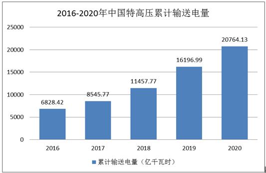 2016-2020年期间,国家电网特高压跨区跨省输送电量快速增长,2020年国家电网特高压跨区跨省输送电量达20764.13亿千瓦时,同比增长28.2%。