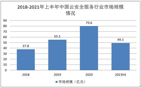 图表:2018-2021年上半年中国云安全服务行业市场规模情况