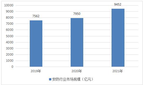 据中国安全防范产品行业协会数据显示,2020年我国安防行业市场规模约为7950亿元,同比增长5.13%,2017-2021年均复合增长率达7.22%,2021年中国安防行业市场规模达到9452亿元。