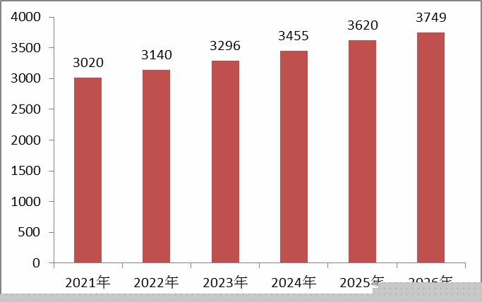 图表:2022-2026我国不锈钢材产量预测(万吨)