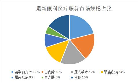 我国眼科医疗服务项目众多,各细分领域发展较为均衡。根据数据分析医学视光、白内障、屈光手术占据了我国眼科医疗服务细分市场的前3位,占比分别高达21.3%、18.1%和16.8%。随后是眼底疾病和眼表疾病,占比分别为14.6%和8.8%。