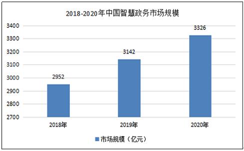 在国家的大力支持和推动下,2020年我国智慧政务市场规模达到3326亿元,同比增长5.86%,预计未来5年内,智慧政务仍将保持6%左右的稳定增长。