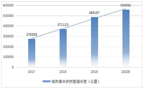 根据《2018年城市建设统计年鉴》数据显示,截至2018年底,我国城市集中供热管道长度达到371120公里,据中研普华测算,2019年城市集中供热管道长度达到486167公里,同比增长31%,2020年将达到559092公里,同比增长15%。