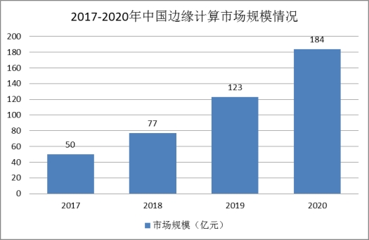 云端受限于延时性和安全性,不能满足部分对数据安全性和系统及时性要求较高的用户需求。这些用户的需求推动大量数据存储向边缘端转移。近年国内边缘计算行业保持高速增长,据统计,2020年我国边缘计算市场规模约为184亿元,预测边缘计算将在未来3-5年创造巨量硬件价值,为大量行业创造新的机遇。