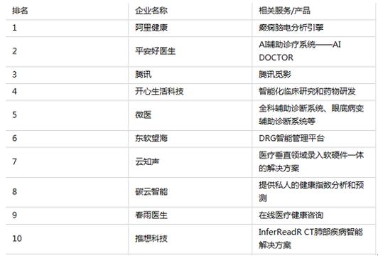 从行业竞争情况来看,我国人工智能医疗行业主要参与企业包括阿里健康、平安好医生、腾讯等,这些公司凭借自身的优势占据人工智能医疗行业头部位置。