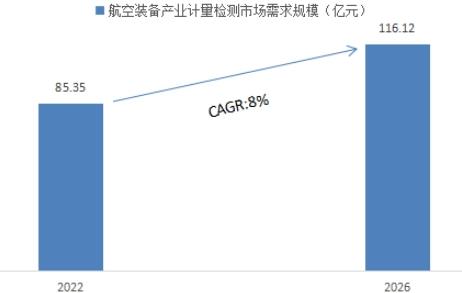 图表:2022-2026年全国航空装备产业计量测试需求规模预测