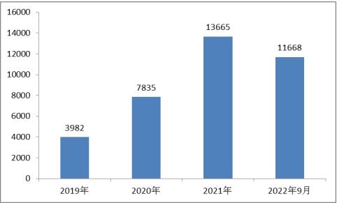 图表:2019-2022年9月石墨烯行业相关企业注册量