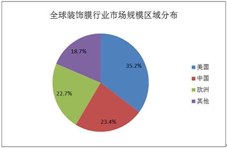 在全球装饰膜市场分布上,美国是主要的消费市场和生产地,美国有3M等国际化公司,在装饰膜的产能布局上规模较大,同时美国建材、房地产等市场较大,对装饰膜的需求量也较大。据不完全统计,2020年全球装饰膜行业市场规模中,美国约占35.2%的市场份额,在全球市场中具有较高的市场竞争力。