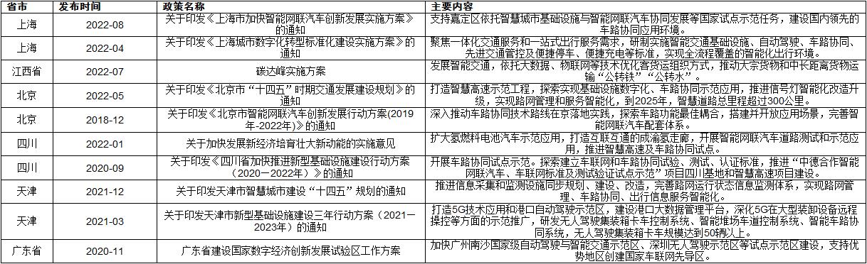 图表:部分省市车路协同行业相关政策