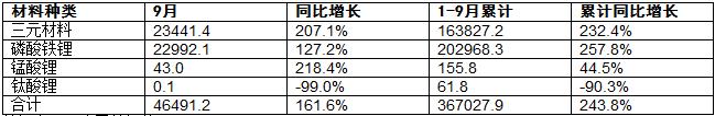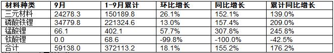 图表:2022年9月中国动力电池产量数据(按材料类型划分)