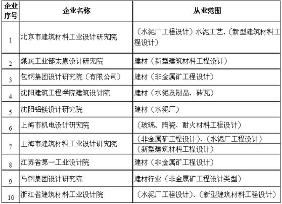 目前,我国主要建材工程勘察设计单位以及排名情况如下表所示: