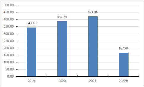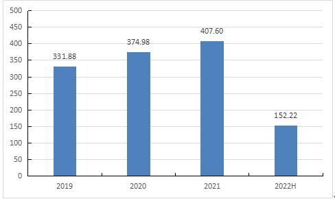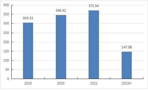 图表:2019年-2022年上半年BOPP薄膜市场规模(单位:亿元)