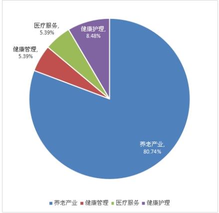 从康养产业的细分市场占比机构来看,养老产业在我国的康养市场中占比较大,占据了其中80.74%的市场‘’是康养产业中最大的市场;其次是健康护理市场,占比8.48%;医疗服务占比5.39%;而健康管理占我5.39%的市场。