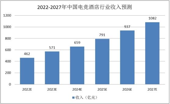 图表:2022-2027年中国电竞酒店行业收入预测