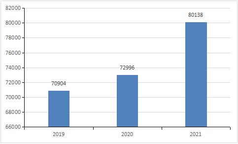 图表:2019-2021年施工企业数量(单位:家)