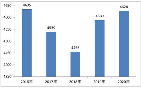 图表:2016-2020年全球婴幼儿配方奶粉产量(单位:千吨)
