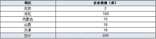 根据国内第三方工商注册服务机构-"企查查"查询结果显示,目前在河北地区中生产建筑木模板行业的企业数量最多,达到149家,占华北地区的74.5%。