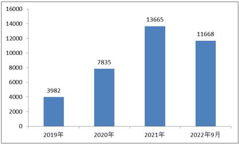 图表:2019-2022年9月石墨烯行业相关企业注册量