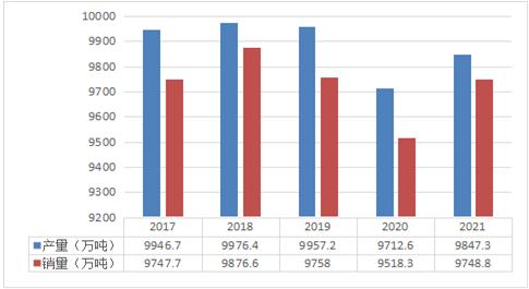2017-2021年全球肉鸡产量总体处于相对平稳运行,其中2020年全球受新冠疫情影响部分产能排产有所收缩,2020年全球肉鸡存栏量为388.5亿只,出栏量为386.7亿只,存栏量与出栏量与2019年相比出现较大幅度下滑,从产销数据来看,2020年全球肉鸡产销量同2019年相比同样出现较大幅度回落。2021年随着全球疫情防控态势有所缓和,全球肉鸡从产销量来看出现了恢复性增长。